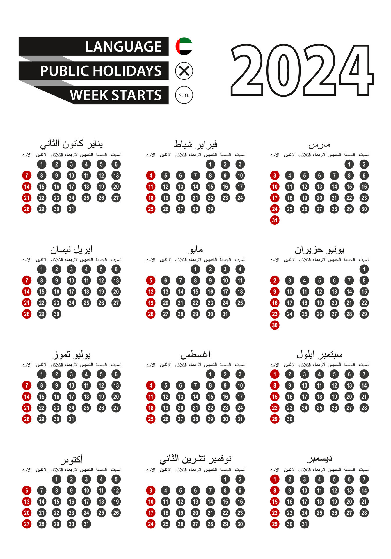 Source : www.generalblue.comIslamic Calendar 2024 Uae Calendar 2024 in Arabic language with public holidays the country : The UAE Cabinet has released Resolution No. 27 of 2024, detailing the schedule of public and private holidays for the year 2025. Published in the Official Gazette, this resolution provides clarity on . Eid al Adha 2024 is expected to officially fall in mid-June โ meaning the UAEโs next major public holiday is not far away. So far this year, weโve celebrated New Yearโs Day on January 1, while Eid al .